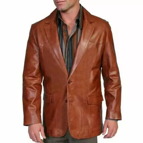 Elegant Coat Handmade Stylish Formal Men's Pure Genuine Lambskin Leather Blazer