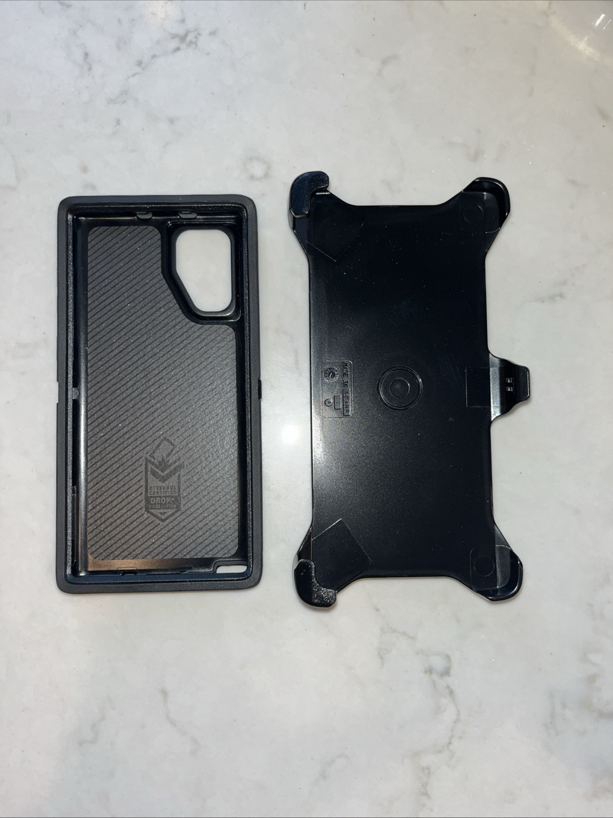 Keep your Samsung Galaxy Note 10 safe and secure with this heavy-duty OtterBox Defender Series Holster Case in Black. The hard case is made of rigid plastic and features a hybrid, matte, and rugged design that is perfect for protecting your phone from scratches and drops. It also includes a clip for easy carrying and a kickstand for hands-free viewing. This case is compatible with Qi wireless charging and is suitable for Samsung Galaxy Note10 users who want to keep their phone safe and stylish. The design/finish of the case is plain and black, making it perfect for those who prefer a sleek and sophisticated look. Get your hands on this OtterBox Defender Series Holster Case and protect your phone from harm.