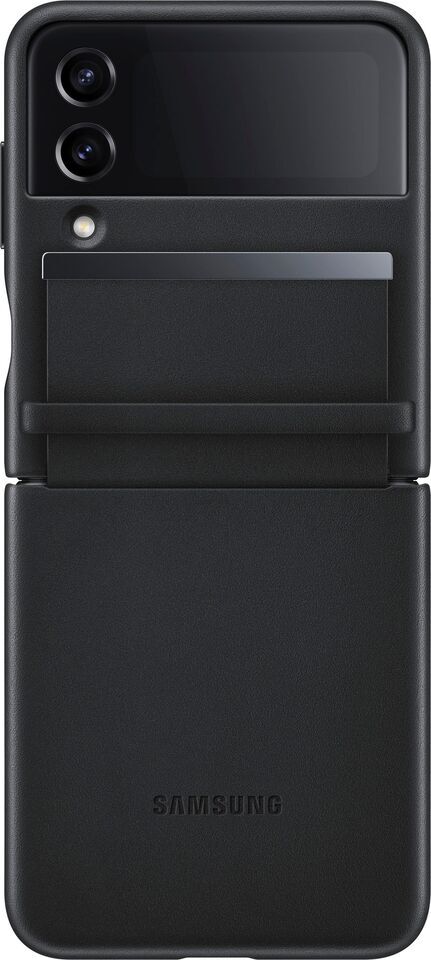 Sophisticated Protection with the Genuine Original Samsung Flap Leather Cover Case for Galaxy Z Flip4 - Black. The sleek black color adds a classic touch to your device, blending seamlessly with any style.