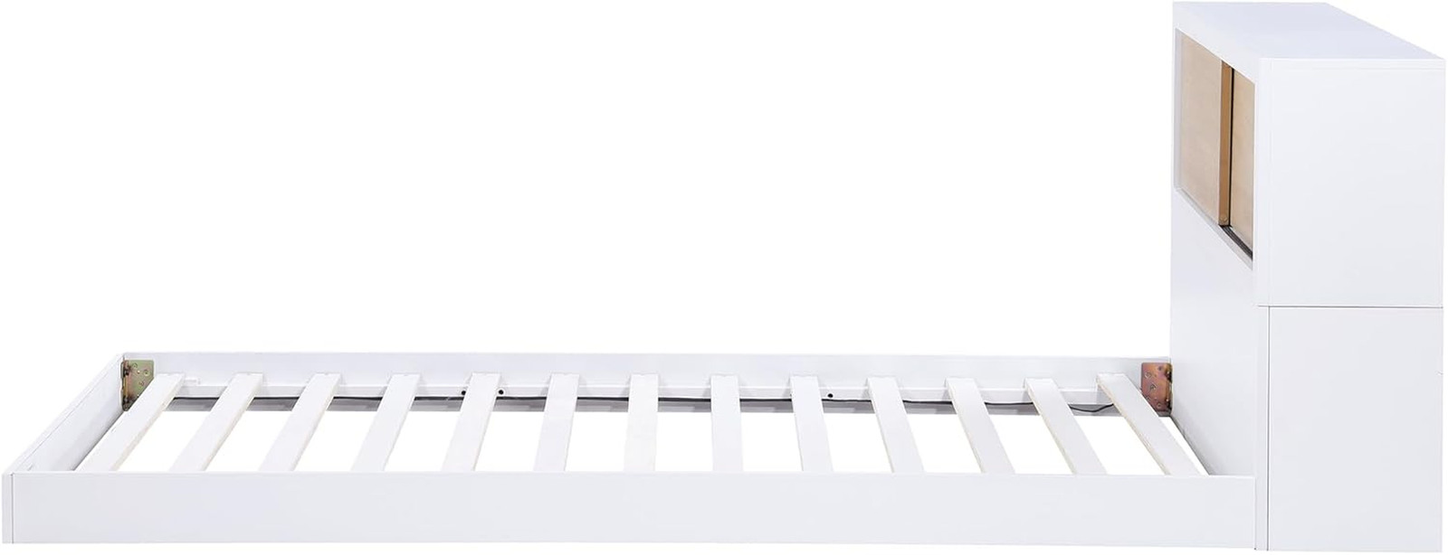 This bed will be a perfect addition to your living space. Included Components Footboard, Hardware, Slats & Side Rails, Twin Bookcase Headboard. Special Feature Bookcase Headboard. Headboard Bookcase with Sliding Panel + USB Charging Port.