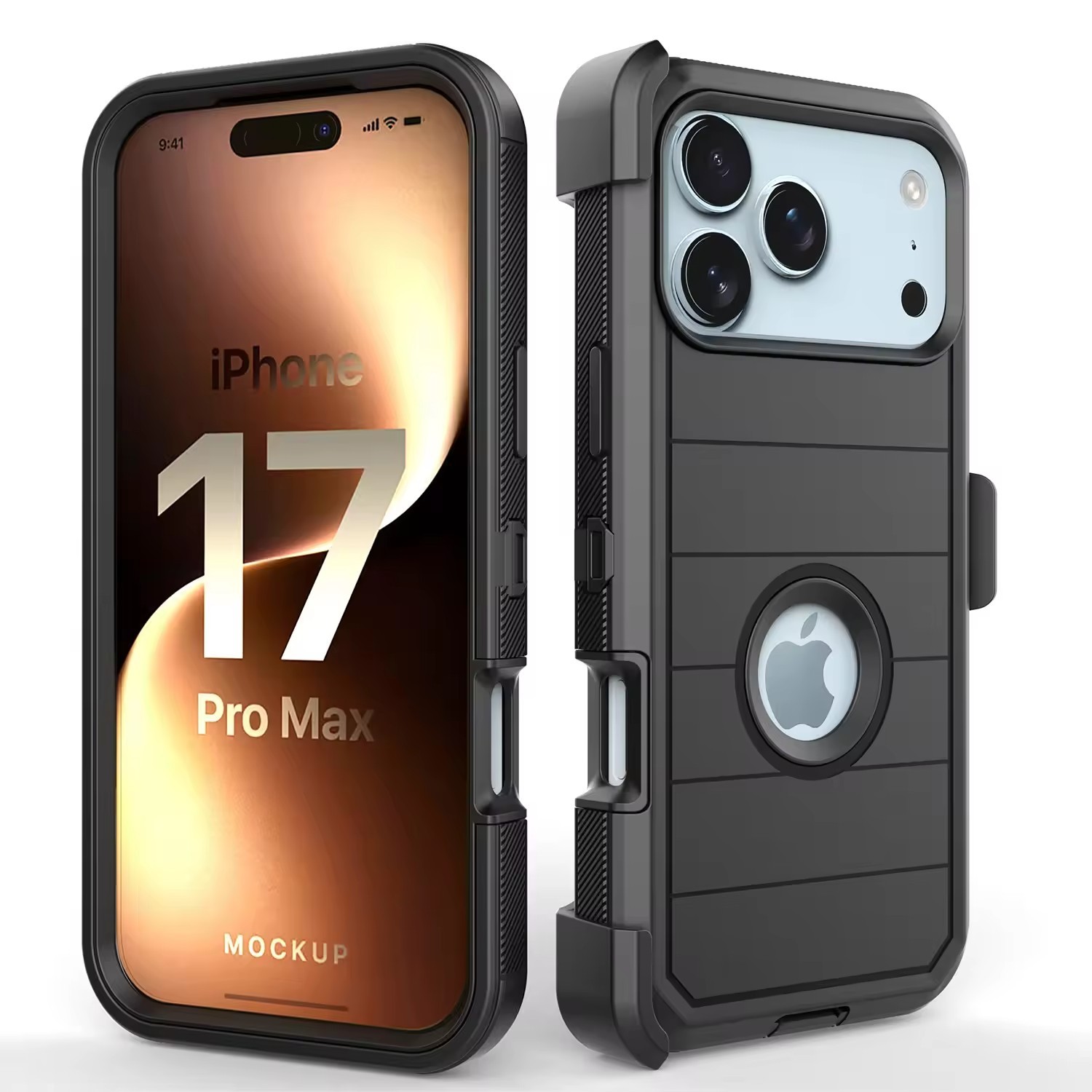 Rugged Defender Phone Case Holster Clip for Apple iPhone 15 16 17 Pro Max Air