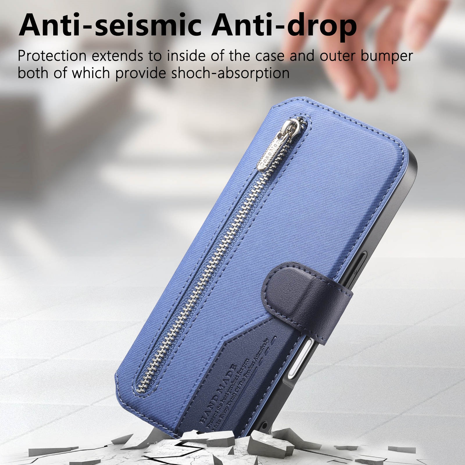 Features: PC+TPU inner shell and PU leather cover form a basic flip protective case that is anti-scratch, shock-absorbent, dust/dirt proof and anti-fingerprint for daily carry. Built-in credit card slots, ID window, cash slot and a secure zipper pocket keep essentials organized. RFID blocking material helps shield card data. Strong magnetic closure, hands-free stand for video reading, and Qi wireless charging support—no need to remove the cover.