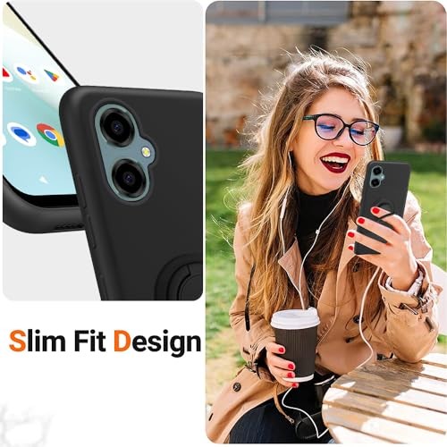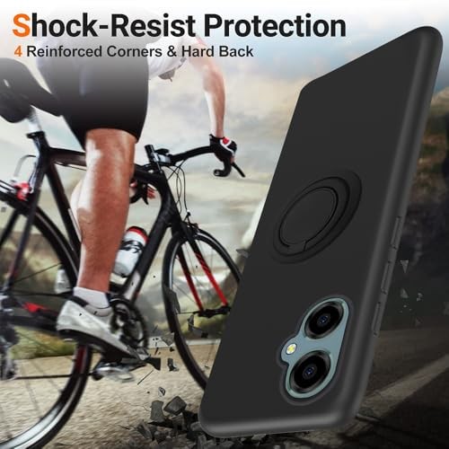 Case for BLU G64 2024 Phone Case with Glass Screen Protector, 360° Rotatable Ring Holder Kickstand/Stand Silicone TPU Slim Fit Shockproof Protective Cover Case for BLU G64 G1010WW - Black. 【Compatibility Fit】Compatible with BLU G64 2024.