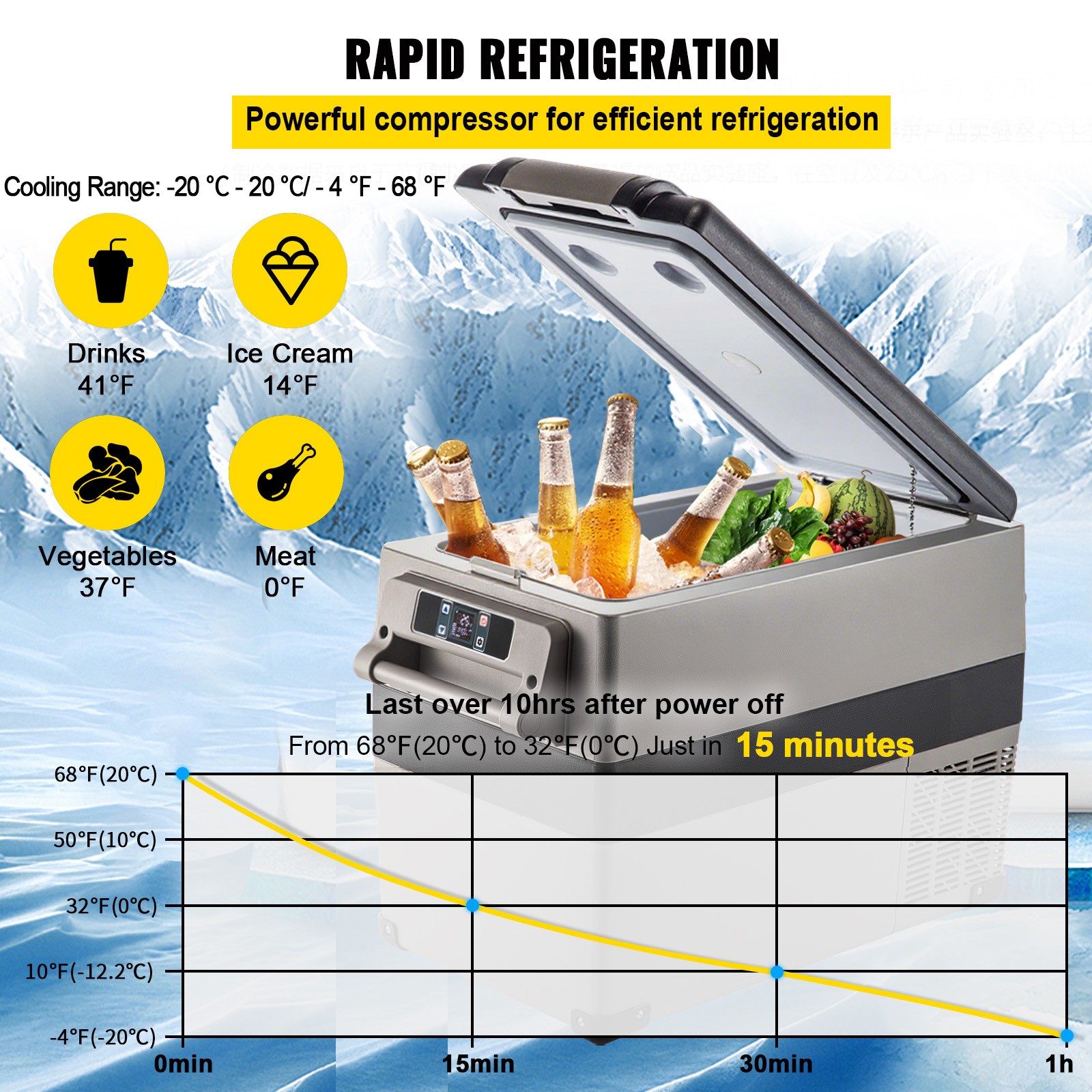 Experience the ultimate convenience with the SKYSHALO 47.5Qt Portable Freezer. The impeccable structure ensures durability and reliability, while the battery protection feature provides peace of mind.
