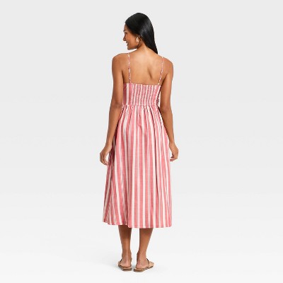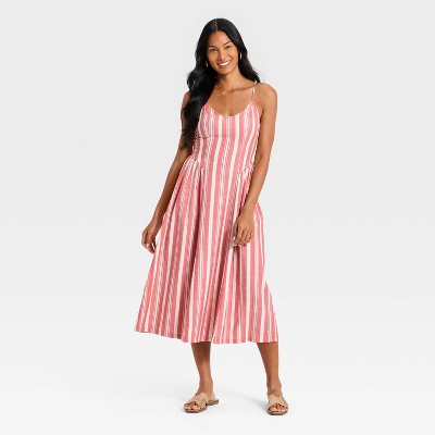 •Sleeveless corset sundress •Mix of cotton, recycled cotton and rayon fabric •Adjustable straps •Side zipper •Midi length Description Bring out your confident, bold and fashionable side in this Sleeveless Corset Sundress from A New Day. This sleeveless sundress tailored in a midi length is made of a mix of cotton, recycled cotton and rayon fabric for breezy wear.