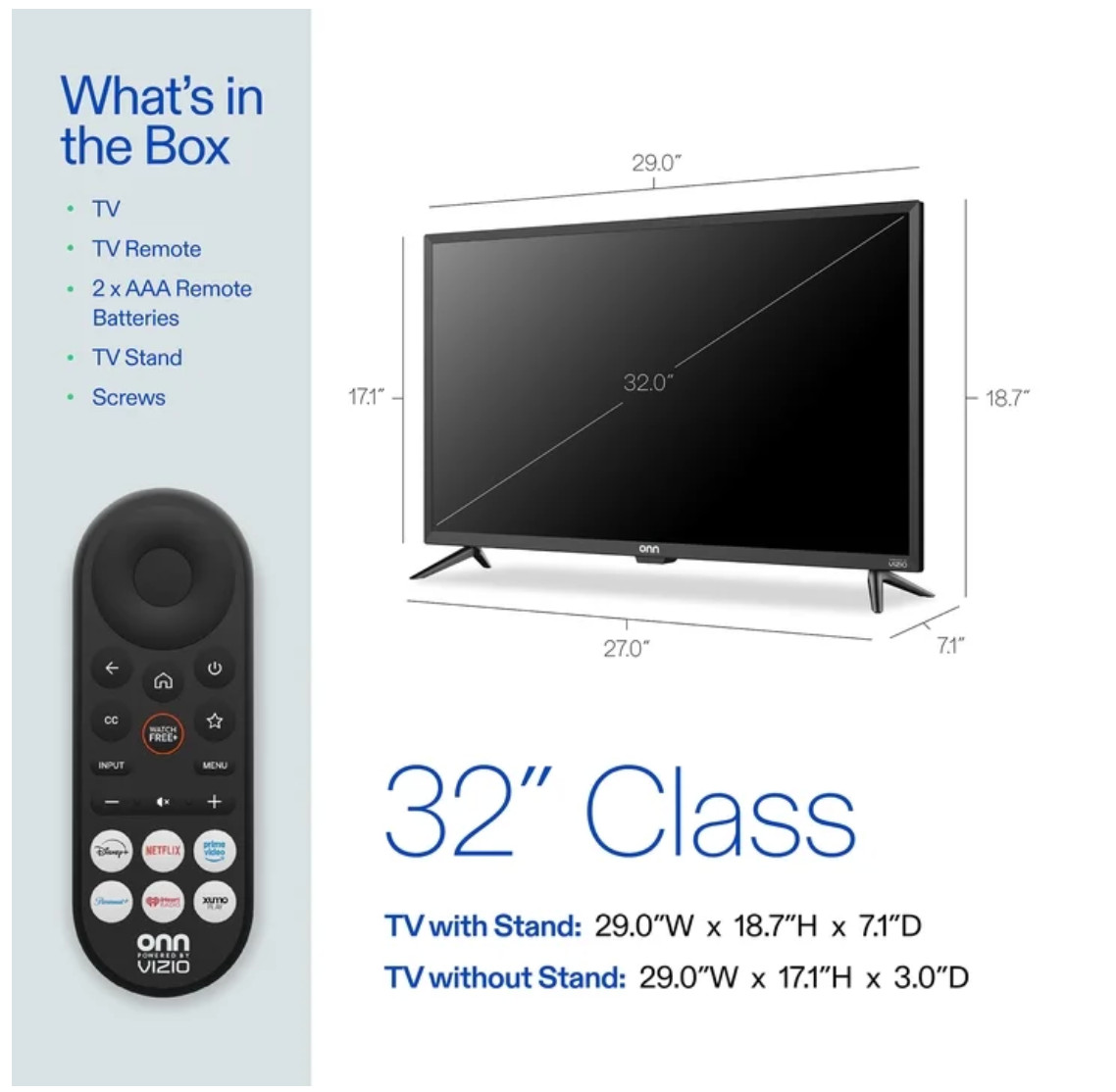 Enjoy your favorite movies, shows, sports, and more in clear high definition on this 32" LED TV. What's in the box?. 32” (31.5” actual diagonal) 720p High Definition (HD) TV. 720p HD Resolution – Clear, crisp picture quality.