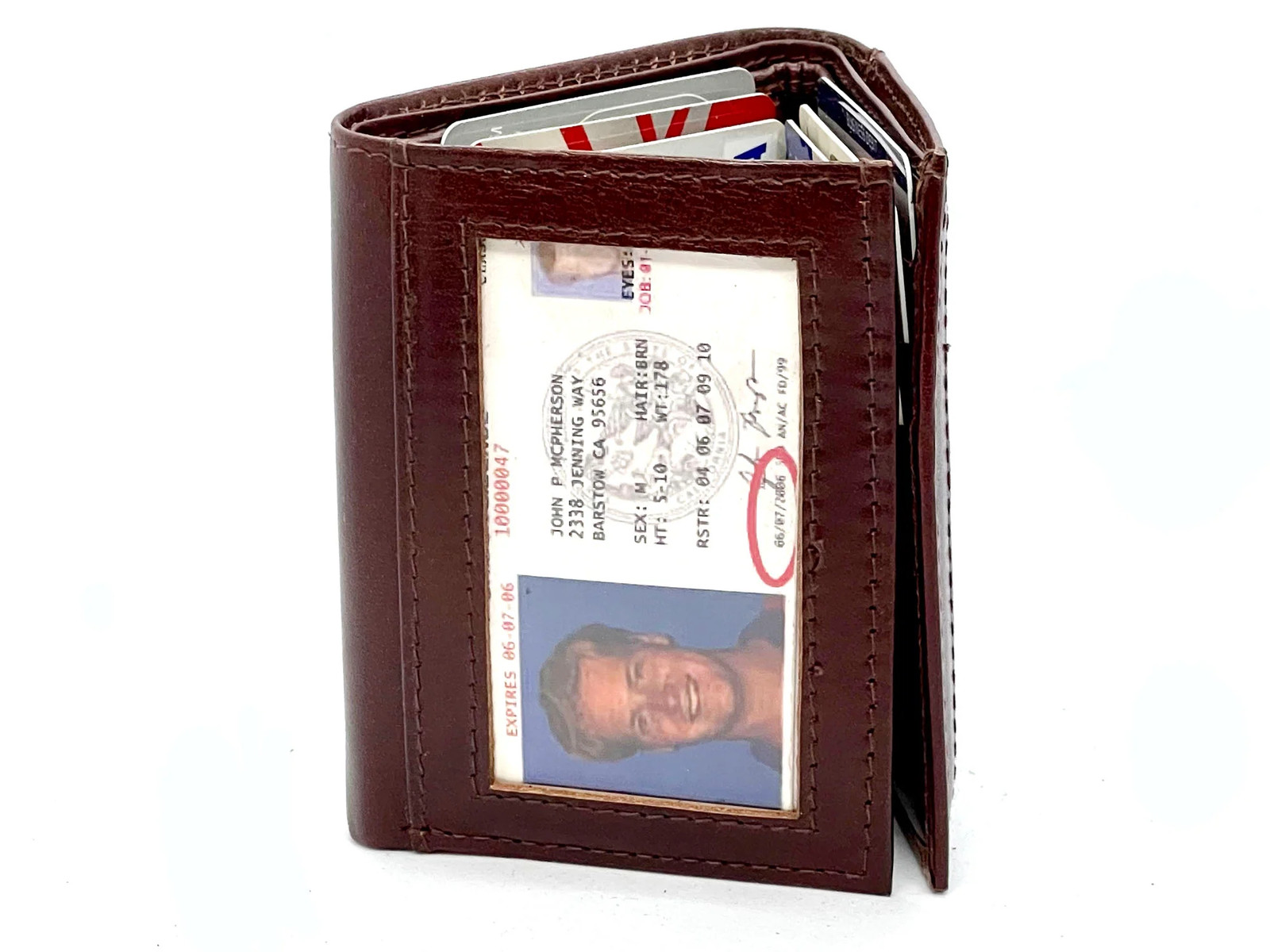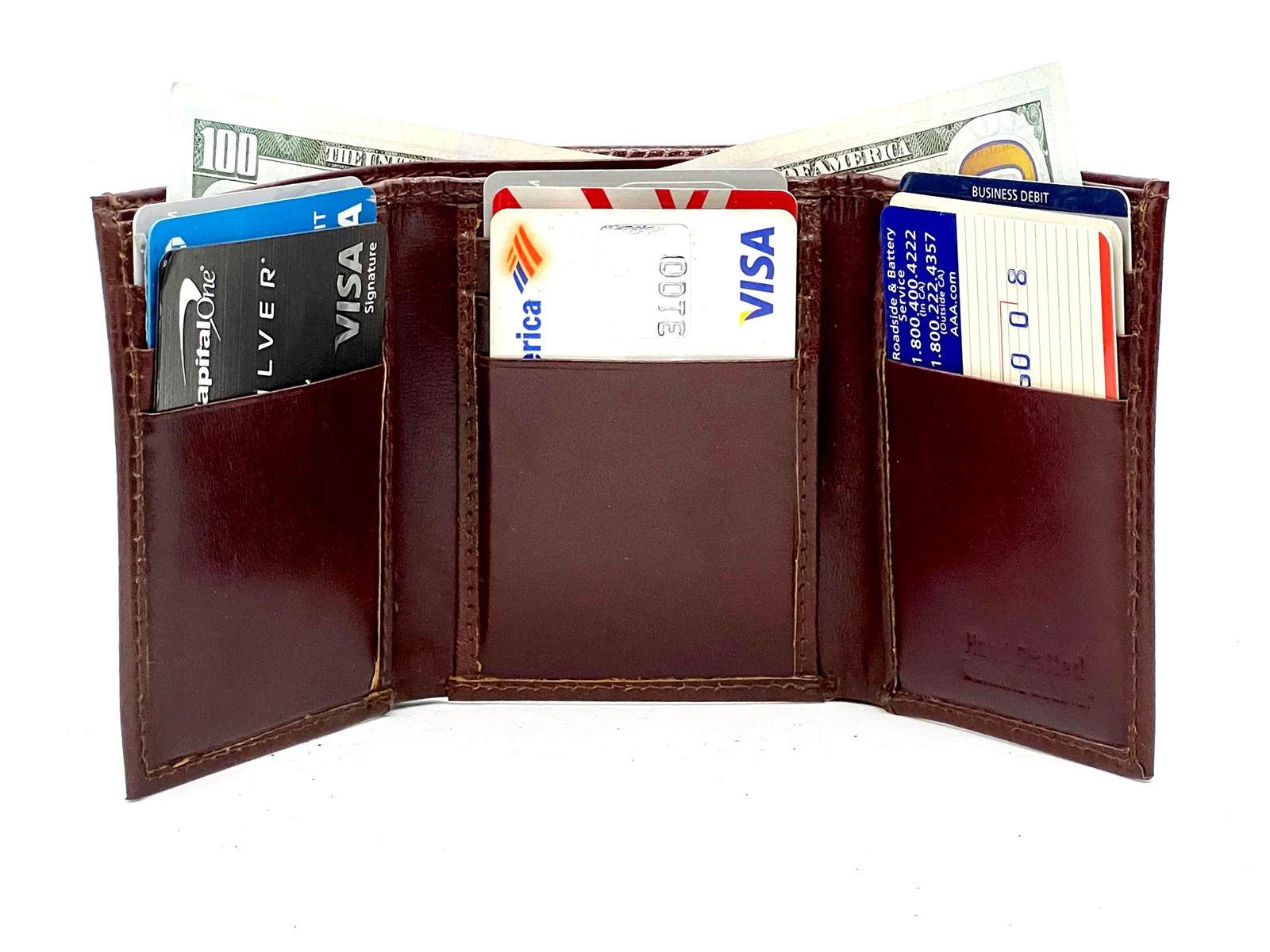 Interior Features: Center Flap, Credit Card Holder, ID Holder, Bill Slots, ID Window". Material: 100% Genuine Leather. Buy now and save! You might also like.