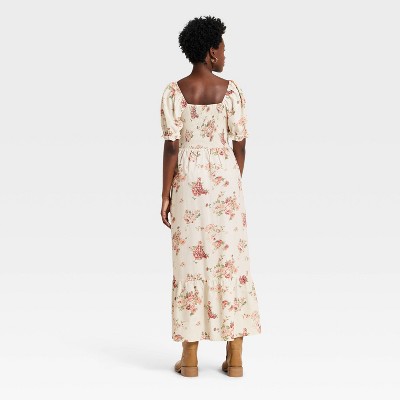 •Universal Thread midi A-line dress •Made of 100% cotton •Sweetheart neckline with front ties •Smocked bodice •Short puff sleeves •Ruffled hem •2 side pockets Description From casual outings to holiday evenings, this Western Puff Short-Sleeve Smocked Midi A-Line Dress from Universal Thread is a perfect choice for casual occasions.