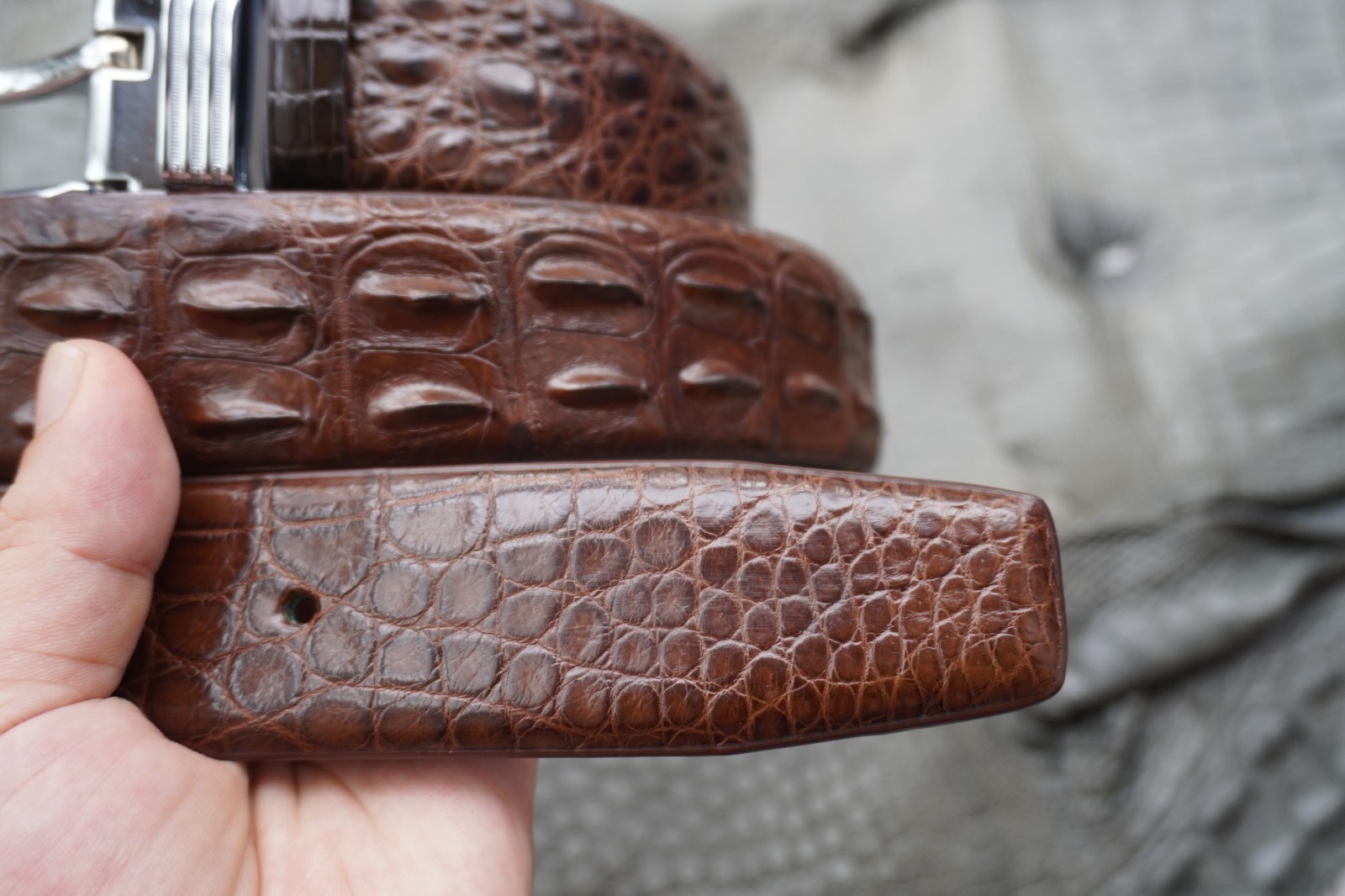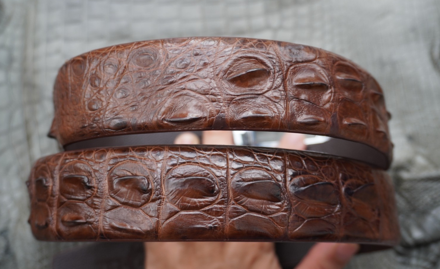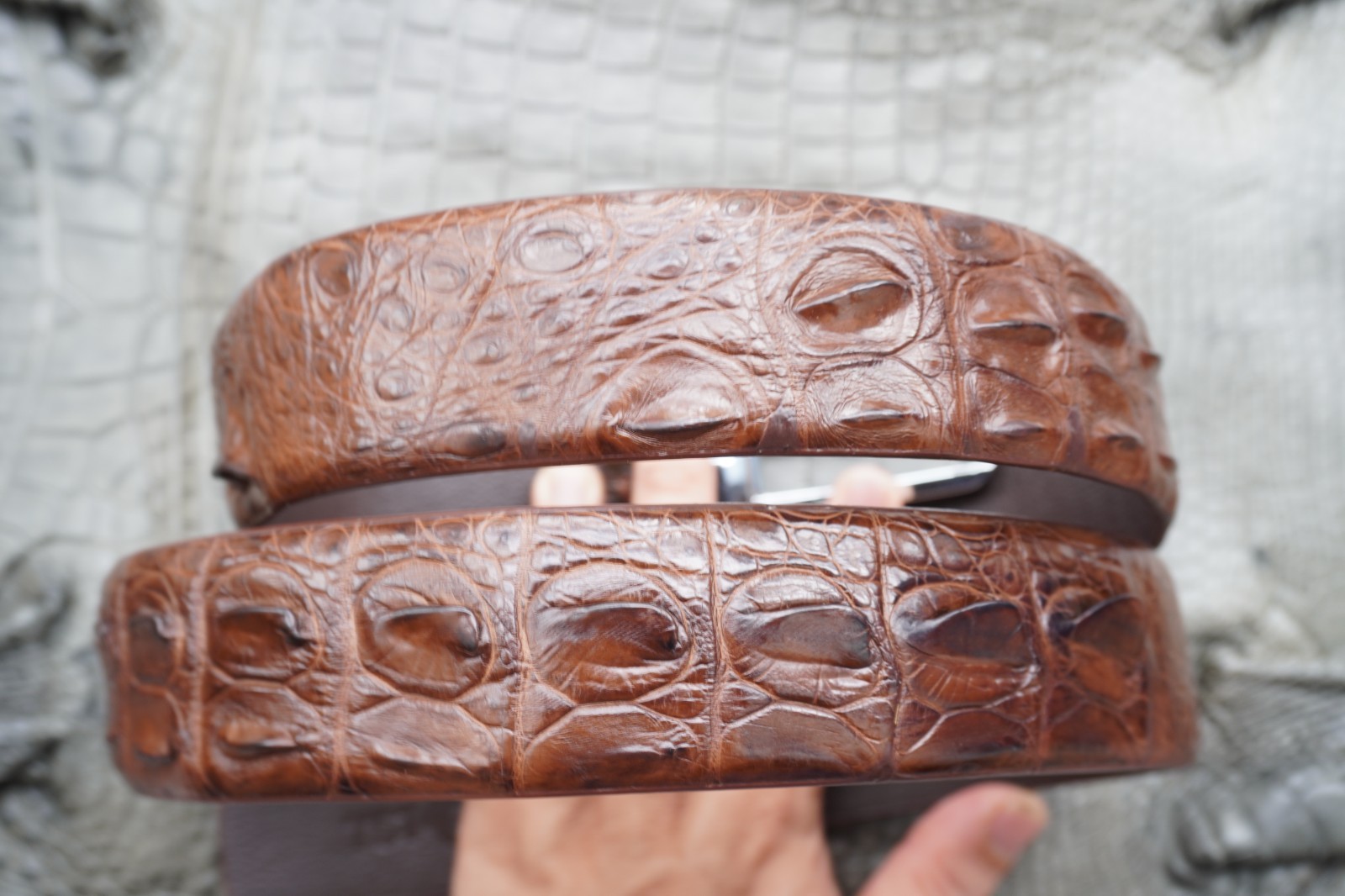 Material: Genuine Crocodile skin leather Out Side. - Color : Brown.