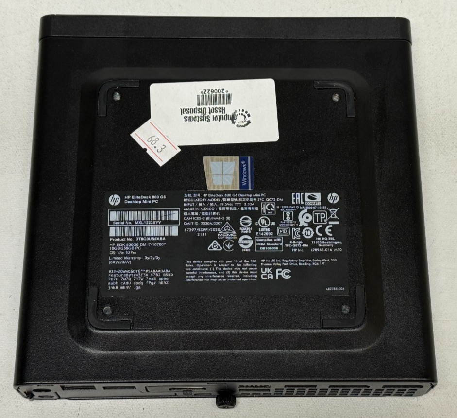 Related products HP EliteDesk 800 G6 DM 3.1GHz i5 8GB 256GB SSD Win 11 Pro (Grade A No AC/Wi-Fi) $255.35 HP EliteDesk 800 G6 DM 3.1GHz i5 8GB 128GB SSD Win 11 Pro (Grade A No AC/Wi-Fi) $232.55 HP EliteDesk 800 G6 DM (i7-10700T 2.0GHz - 16GB RAM - 512GB SSD - Win11Home) $299.84 HP EliteDesk 800 G6 DM Core i7-10700T 2.00 GHz 8 GB DDR4 No HDD $259.99 HP EliteDesk 800 G6 DM i5-10500 16GB 256GB GbE BT5 WiFi6 W10P 6P1W3UP#ABA ❤️️✅❤️ $309.99