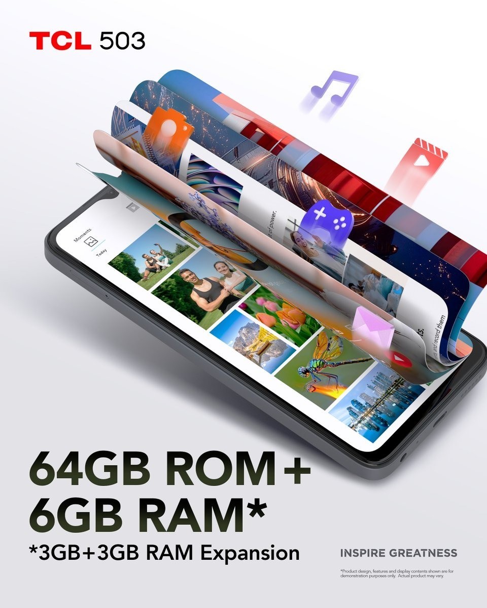 TCL 503 is designed to look minimalistic, find how a vibrant screen brings more thrill while watching. Ensures smooth, lag-free web browsing with many tabs open Massive storage - for everything that matters.