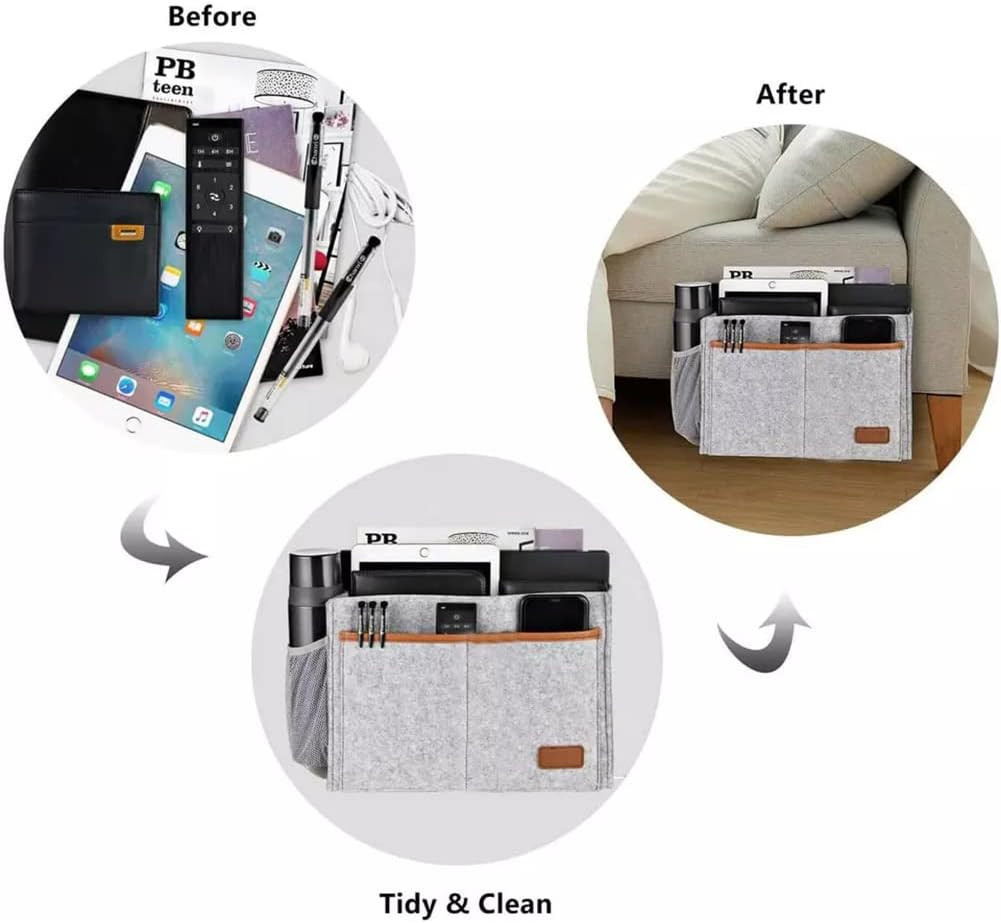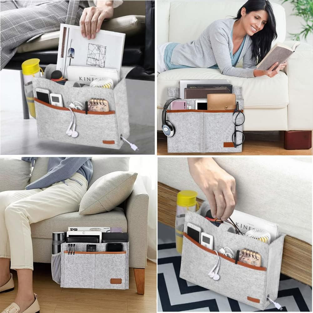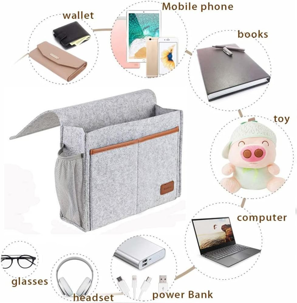 KAKOII Bedside Caddy,Bedside Caddy for Dorm, Bed bed Caddy, Bedside Organizer Pockets. [Space Saving and Get Organied] Our bedside pocket,the main pocket is much wider for storing, access to the storage pockets easier.