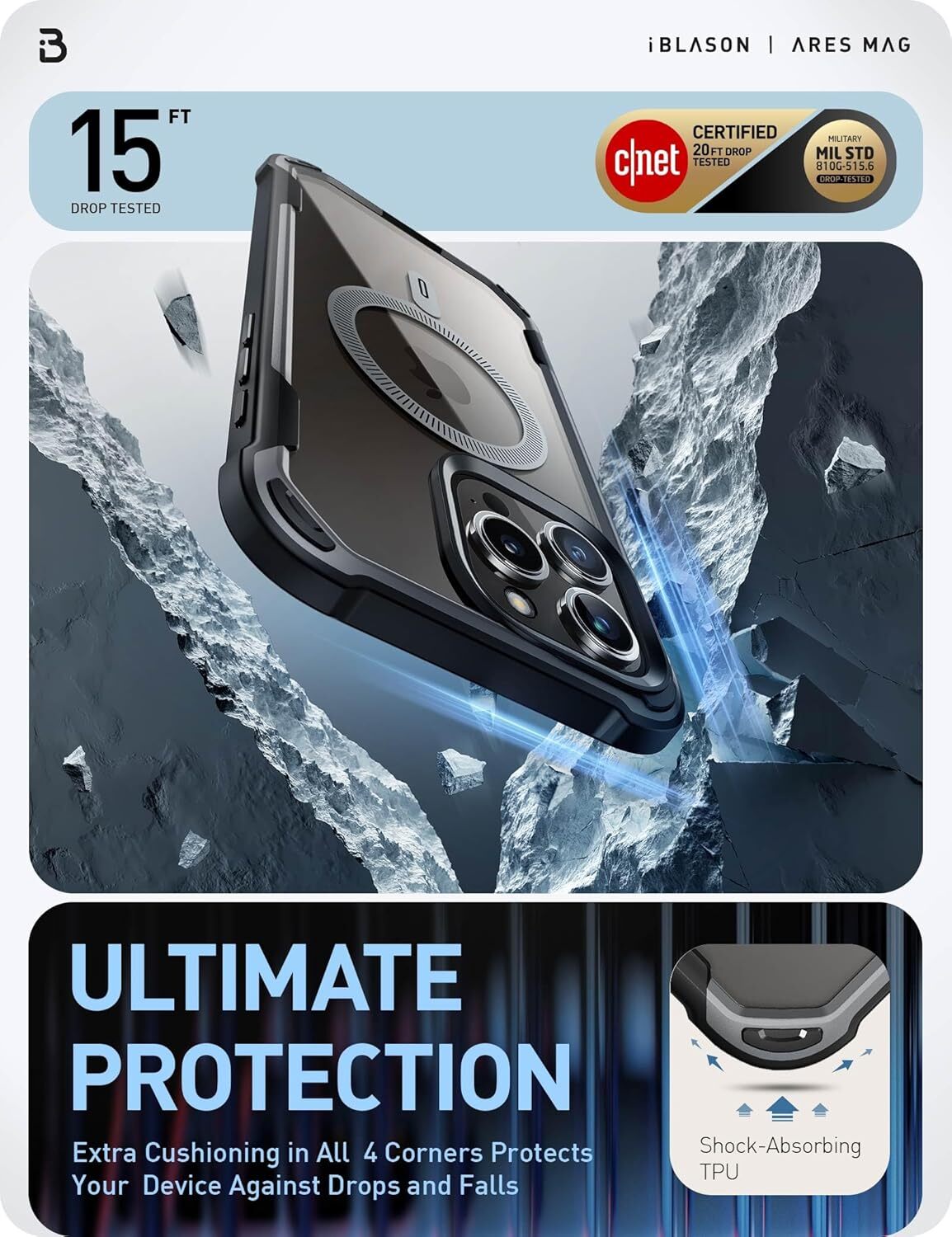 The AresMag Full-Body Case. [STRONGER MAGNETIC ABSORPTION]: Built-in 12x strongest N55 magnets allow faster and more efficient MagSafe wireless charging. It also works with the MagSafe wallet and magnetic car mount.