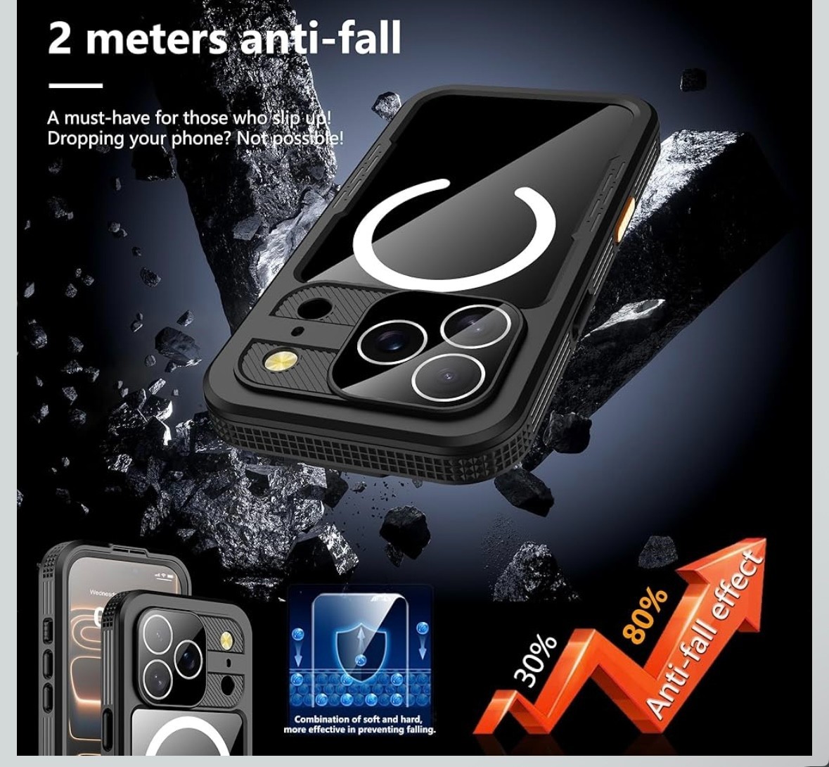 [IP68 waterproof]:Get ready for any adventure with our IP68 certified iPhone 17 pro waterproof case, capable of withstanding depths of up to 6.6 feet for 1 hour. Keep your phone safe and dry in any situation, perfect for outdoor activities and water sports.