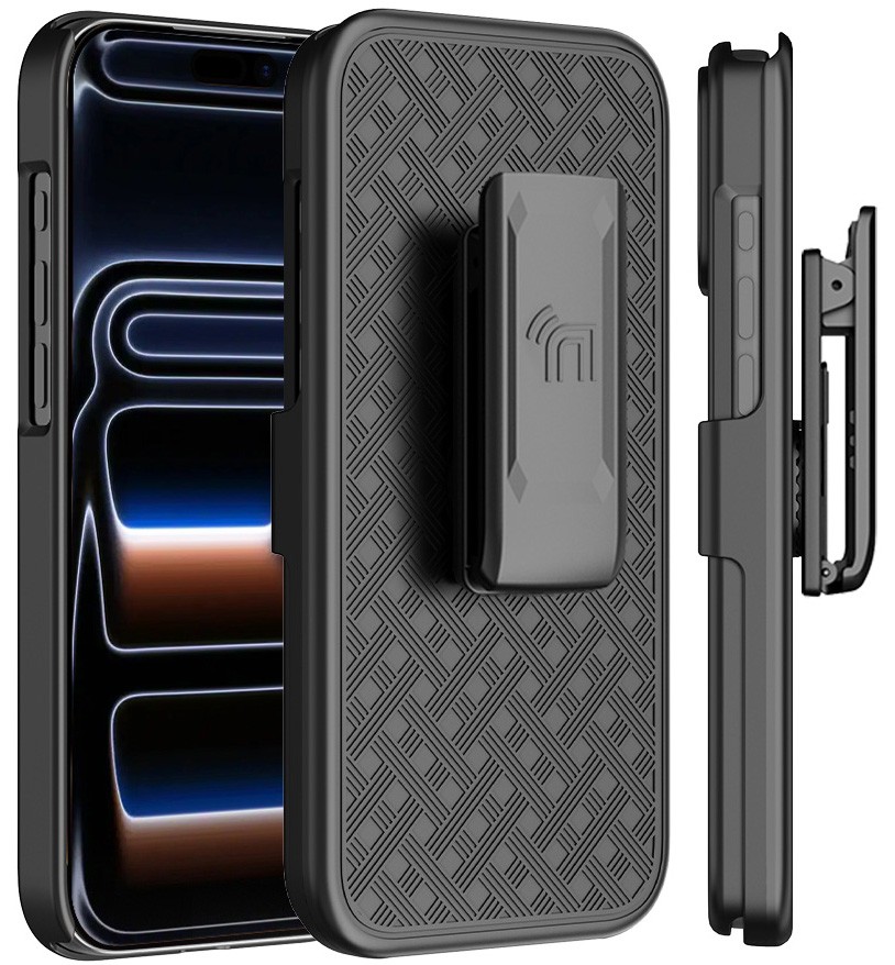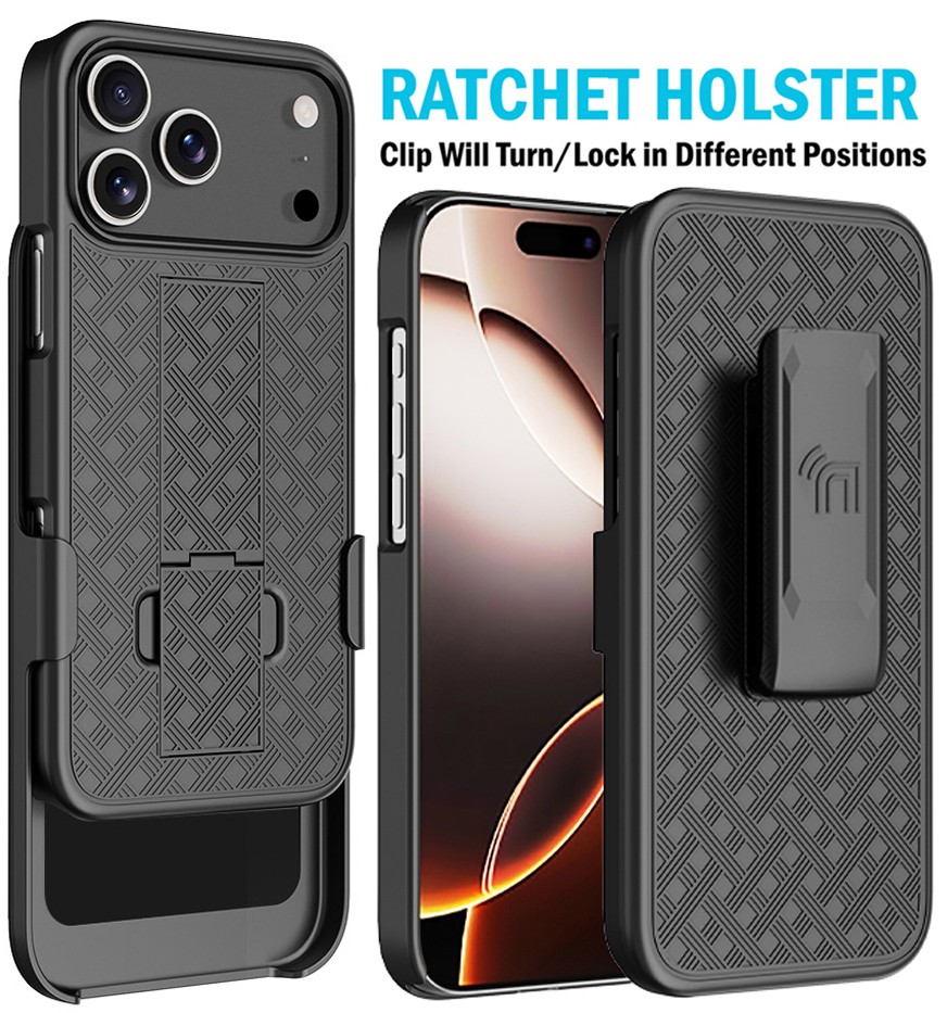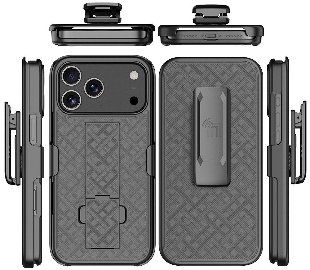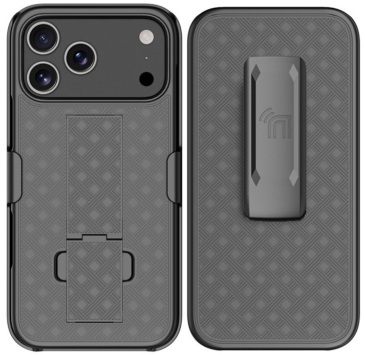 Slim Hard Case Stand and Belt Clip Holster Combo for iPhone 17 Pro Max - Black