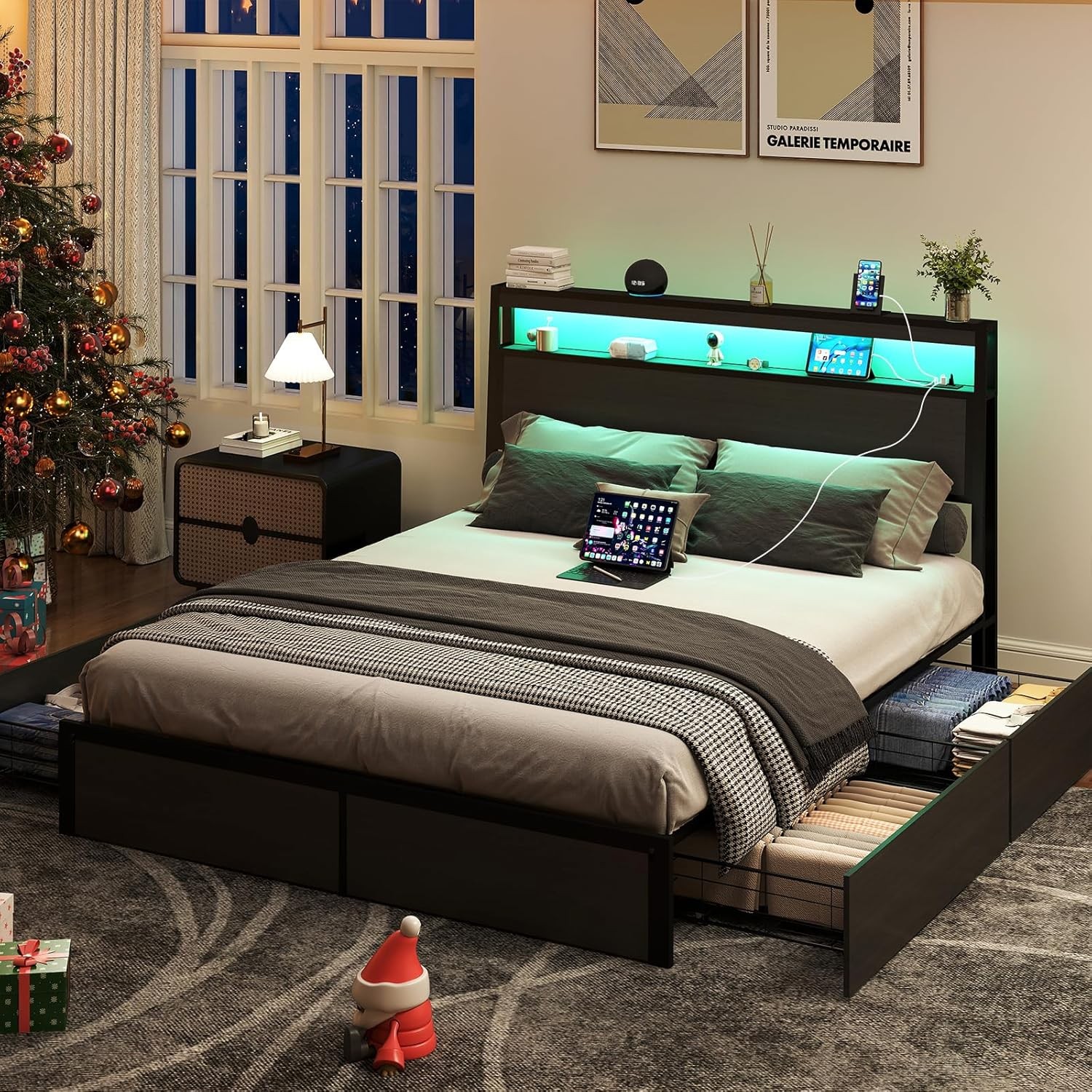 Multi-Function RGB LED Light: The RGB LED light of the headboard provide a leisurely atmosphere for your night. 2-Tier Storage Headboard with Power Station. Plastic feet pads protects your floor from scratches.