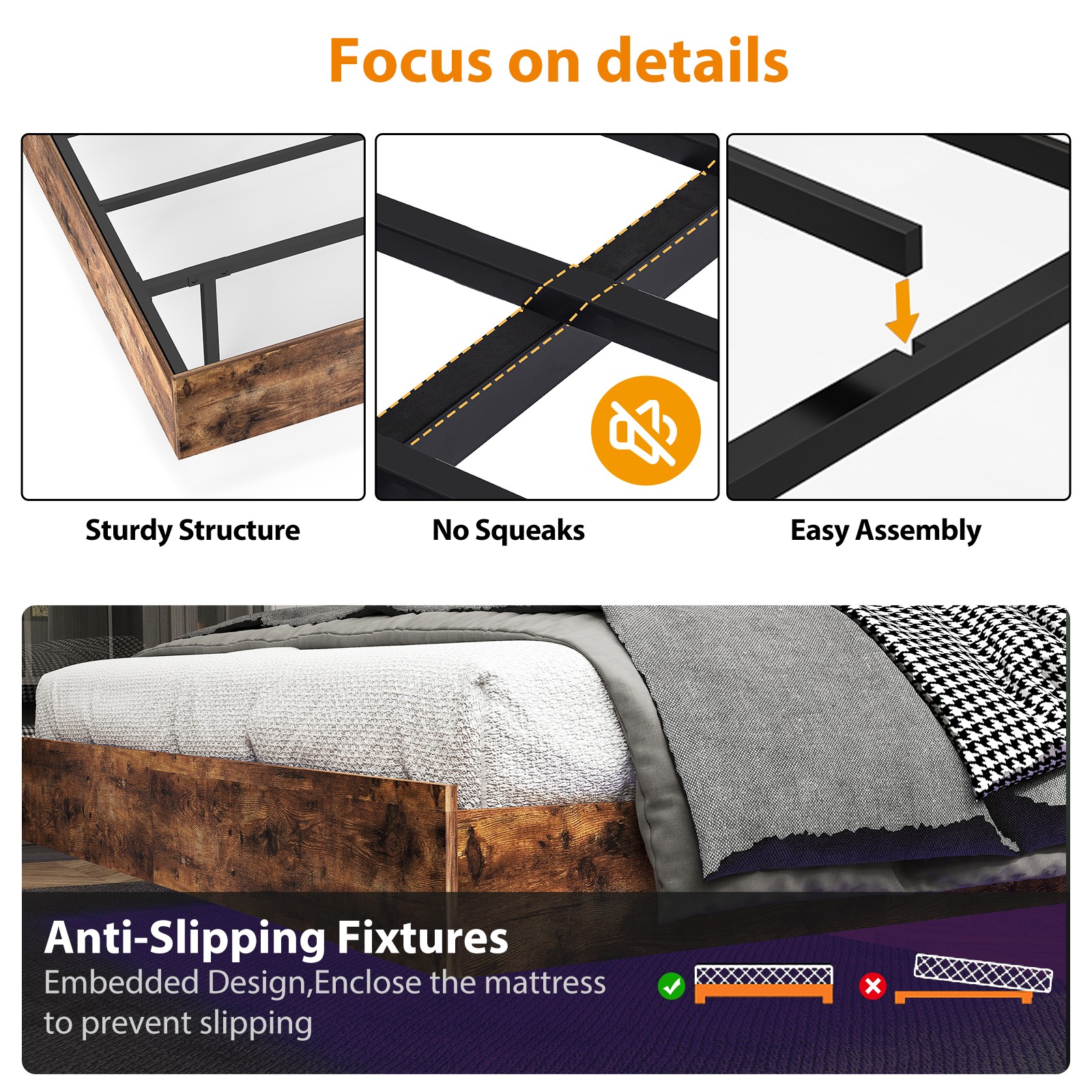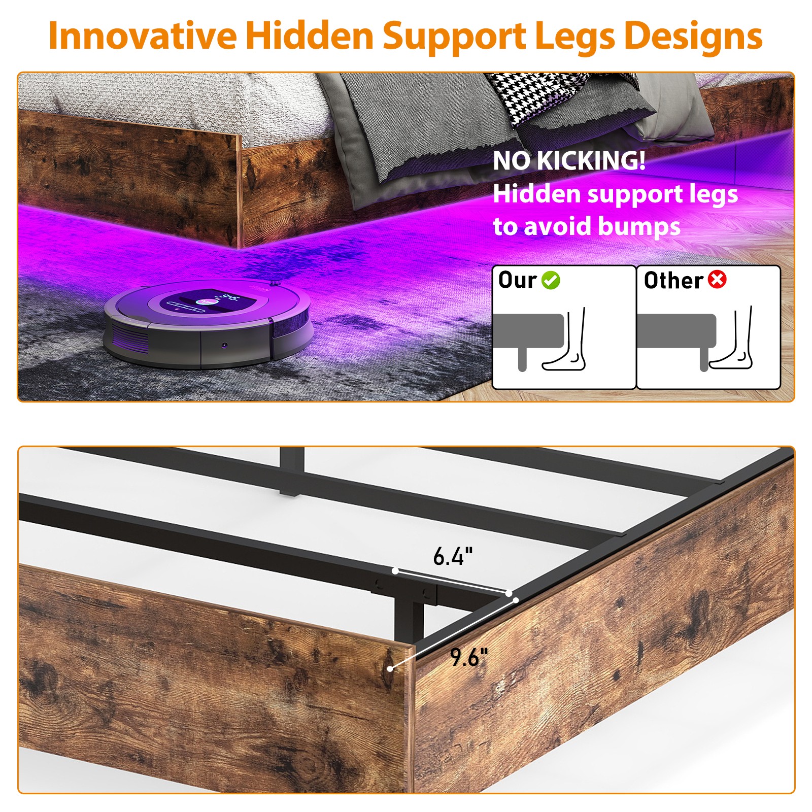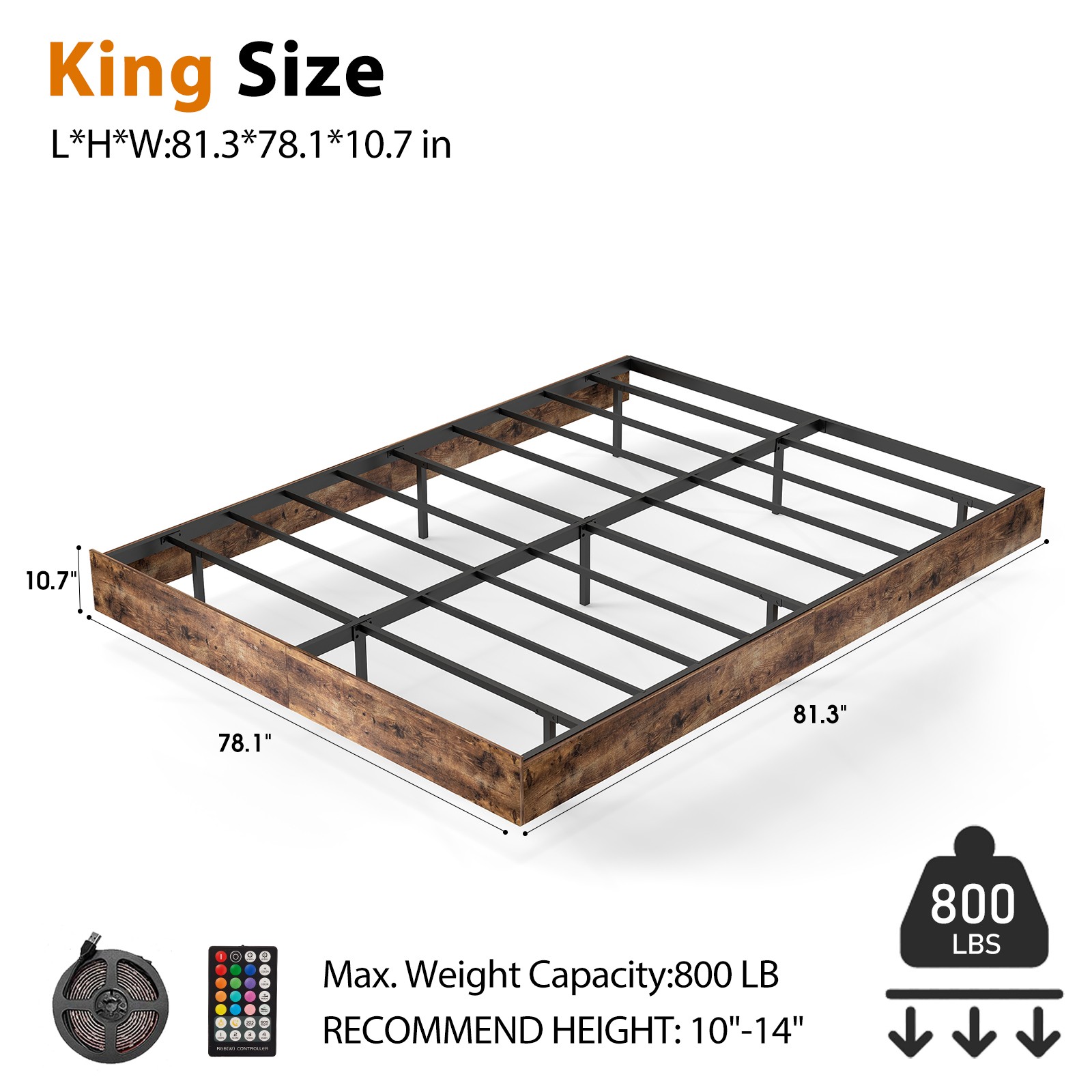 Customizable Ambiance - Hidden legs provide robust support while giving the illusion of a floating bed. Functional Floating Design Queen Size. Folding Bed. Queen Size: 81.4"L x 62.7"W x 10.6"H. - Eliminates the risk of stubbing toes on bed legs.