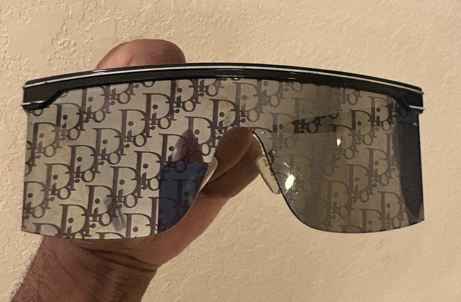 Christian Dior Dior Oblique visor sunglasses (often called a Dior shield or ski-style visor). They feature: • A single wraparound shield lens • All-over Dior “Oblique” monogram print on the lens