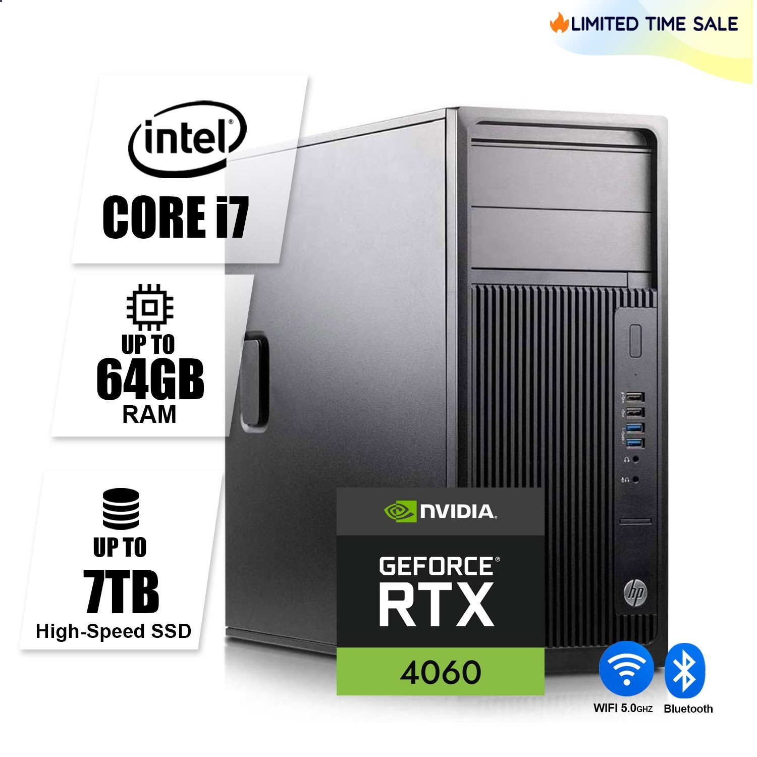 HP Gaming PC Desktop Computer i7,Up to 64GB RAM 7TB SSD NVIDIA GeForce RTX 4060