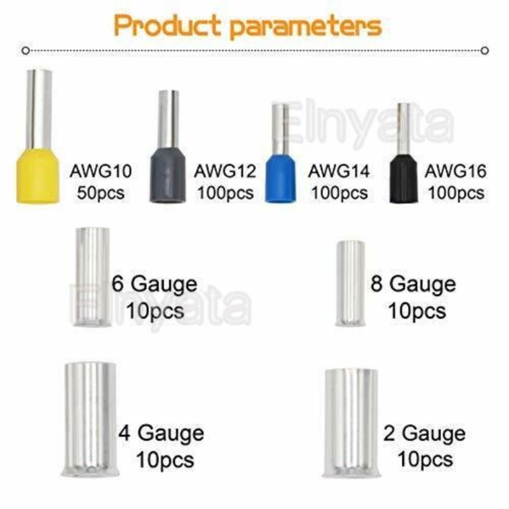 Ferrules designed with insulation flare makes wire insertion easier and eliminates loose strands of wire, prevent wire ends from fraying or breaking. Connector Type: Crimp. Gauge: 2-16 AWG. Cable housing ferrule wrap your wire like a glove.took the cleanliness of your installs to the new level.