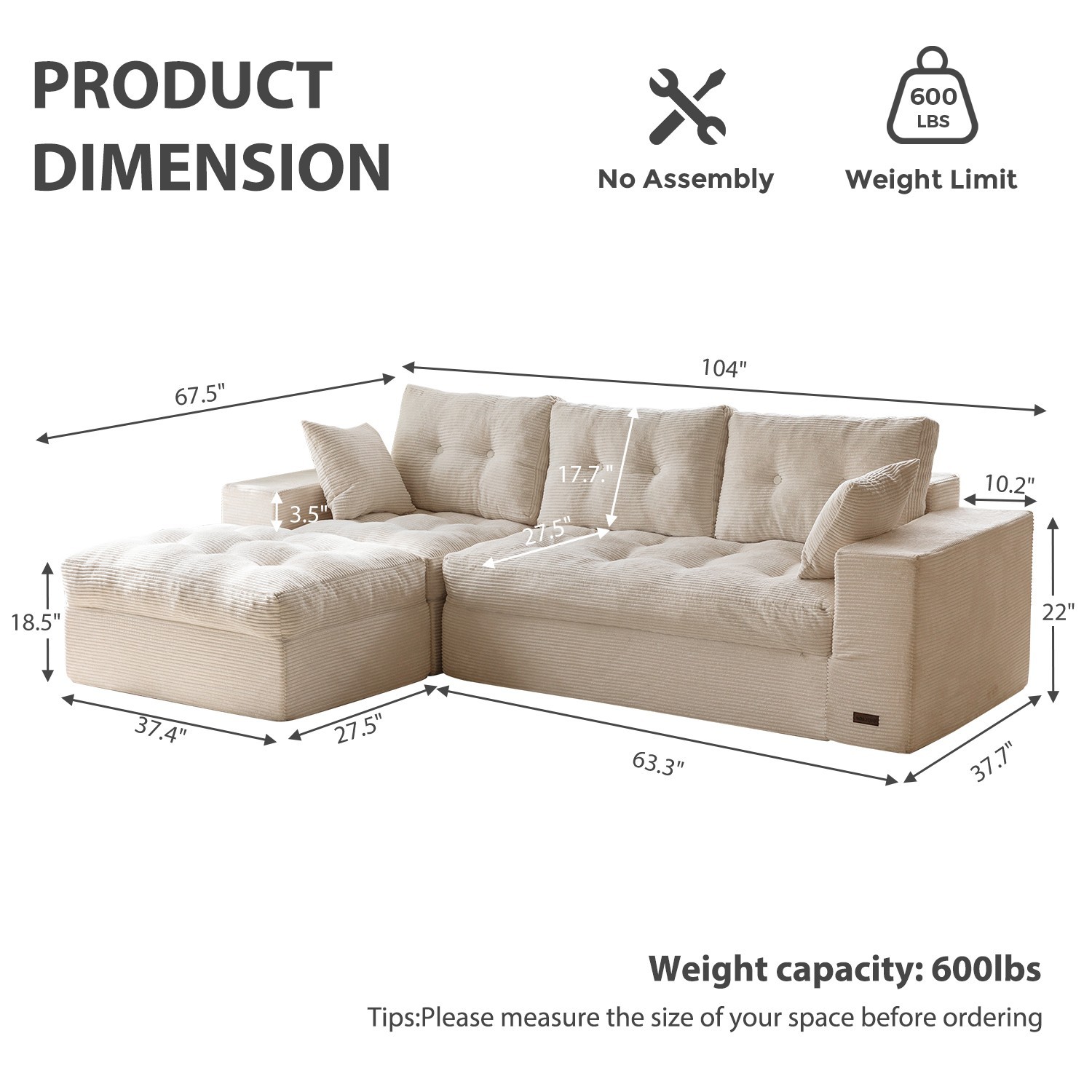 No assembly required—just unbox and let it fully expand within 72 hours. Perfect for flexible, modern living. No Assembly Required:Arrives in two boxes—just unbox and let the sofa expand naturally over 72 hours.