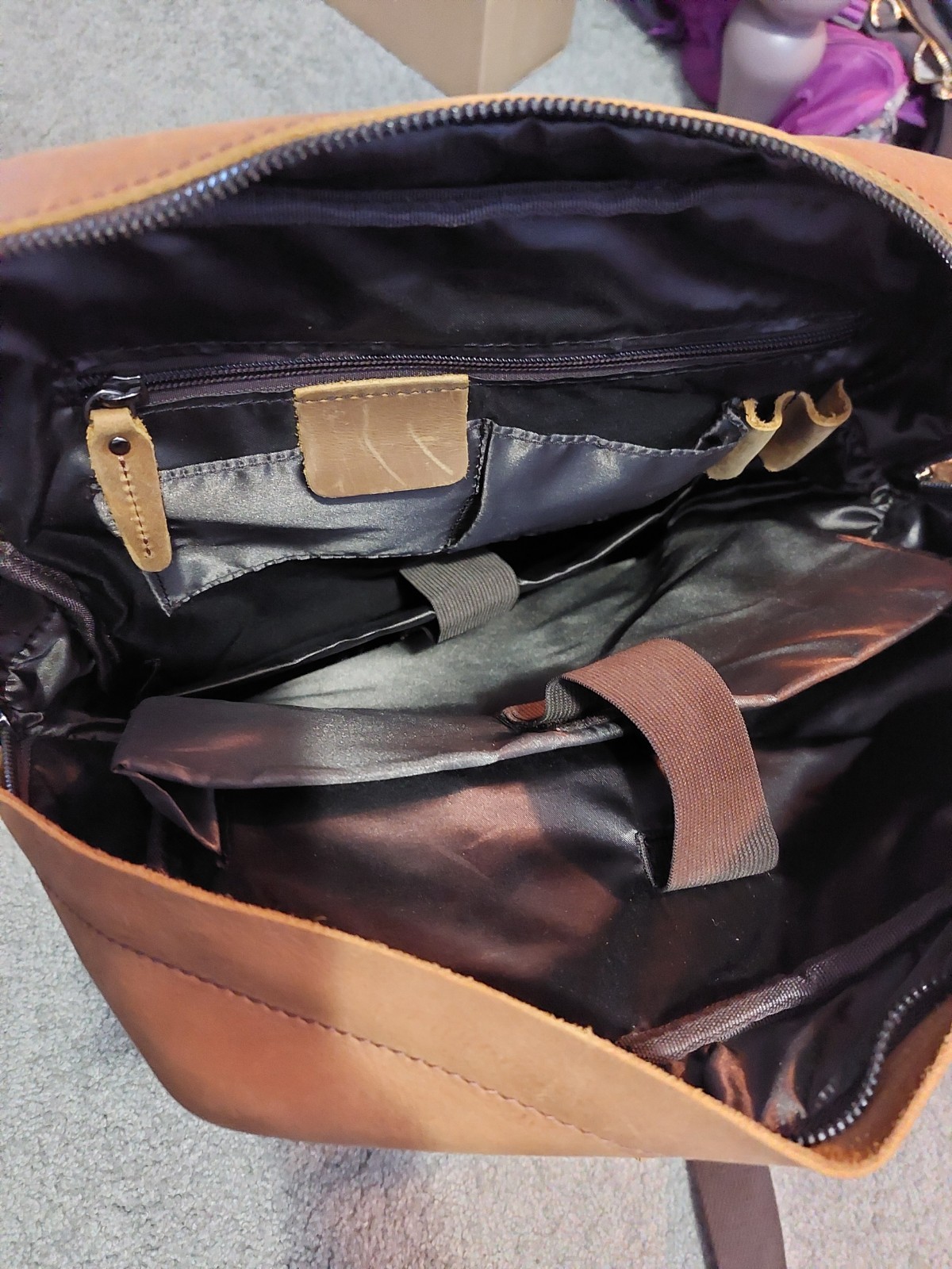 19" genuine leather men's laptop backpack. Owned but VERY lightly used (I'm not even sure it's left our house). Please reach out with any questions! Free shipping is included.
